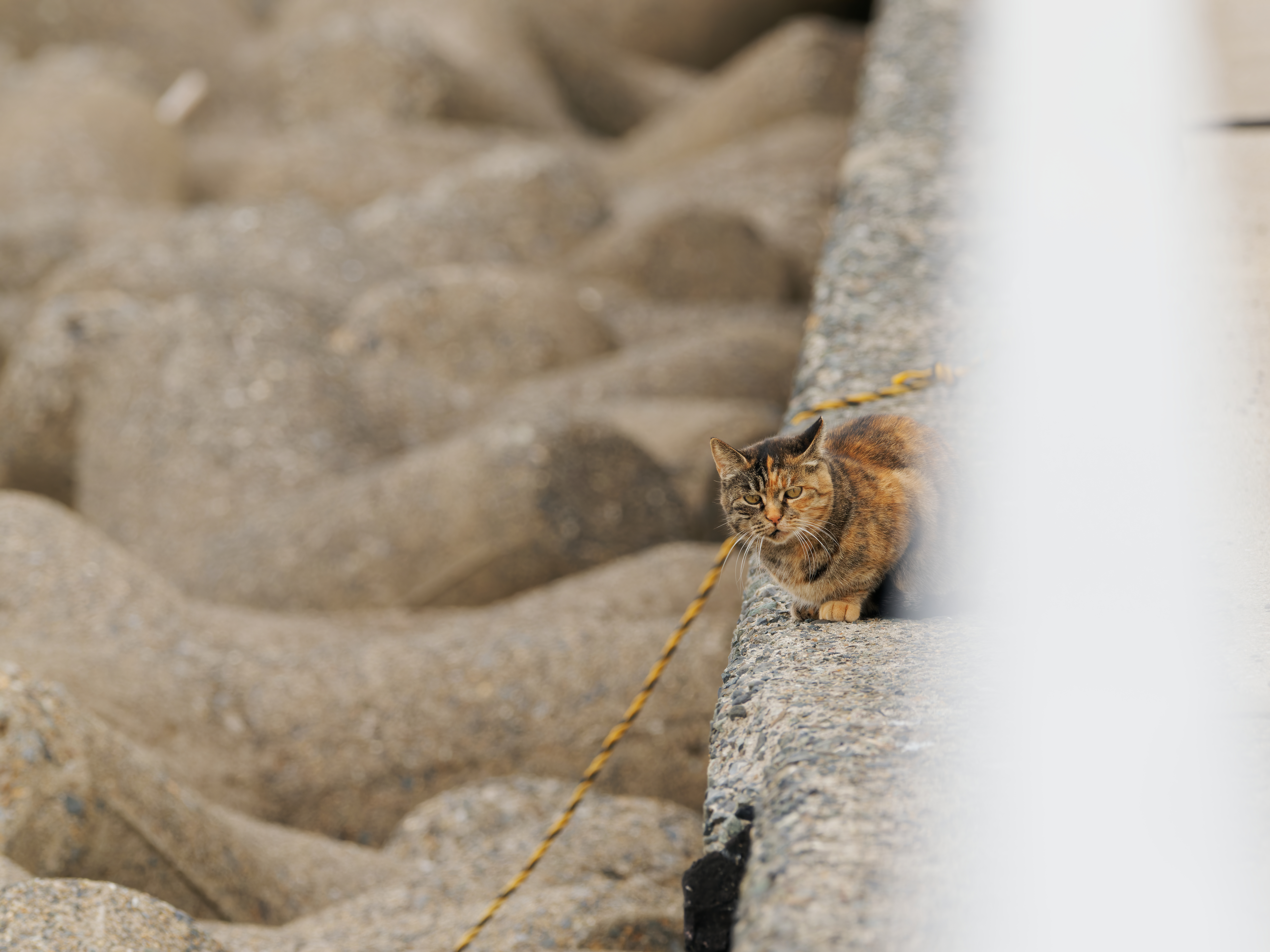 今日も海辺でイソヒヨドリを撮影していたら、遠方から野良猫が静かに近づいてきた。私は被写体としての、野良は獲物としてのイソヒヨドリを挟んで対峙した。