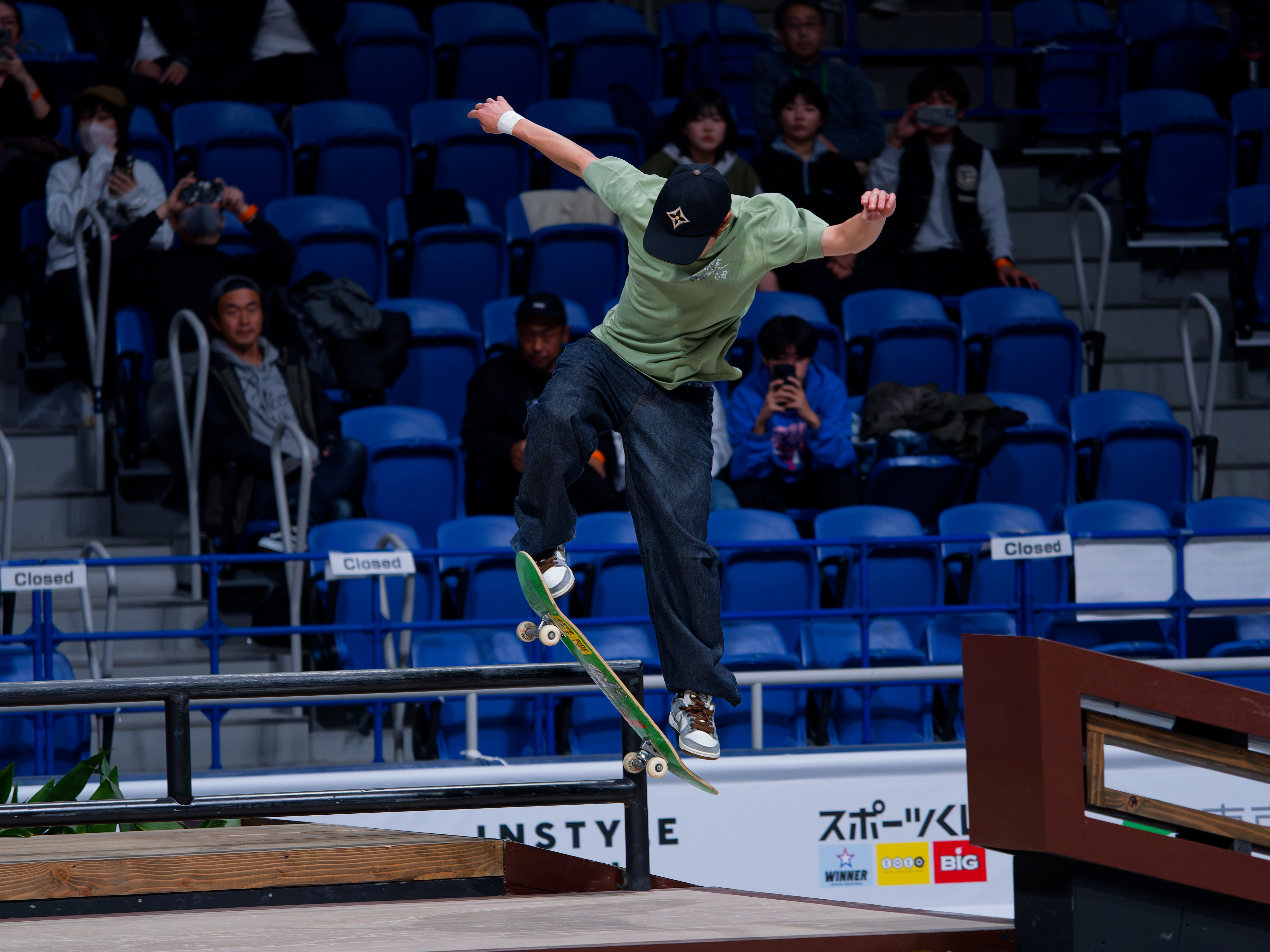 屋内の動体撮影でシャッタースピードを速くする必要があるが、有明コロシアムもスケボーの大会も行ったことも撮影したこともないので、ノイズがどう出るか少し心配だった。友人に「いい写真撮ってやるよ!」とイキってしまった手前、それなりのクオリティにしないと面目ないし。