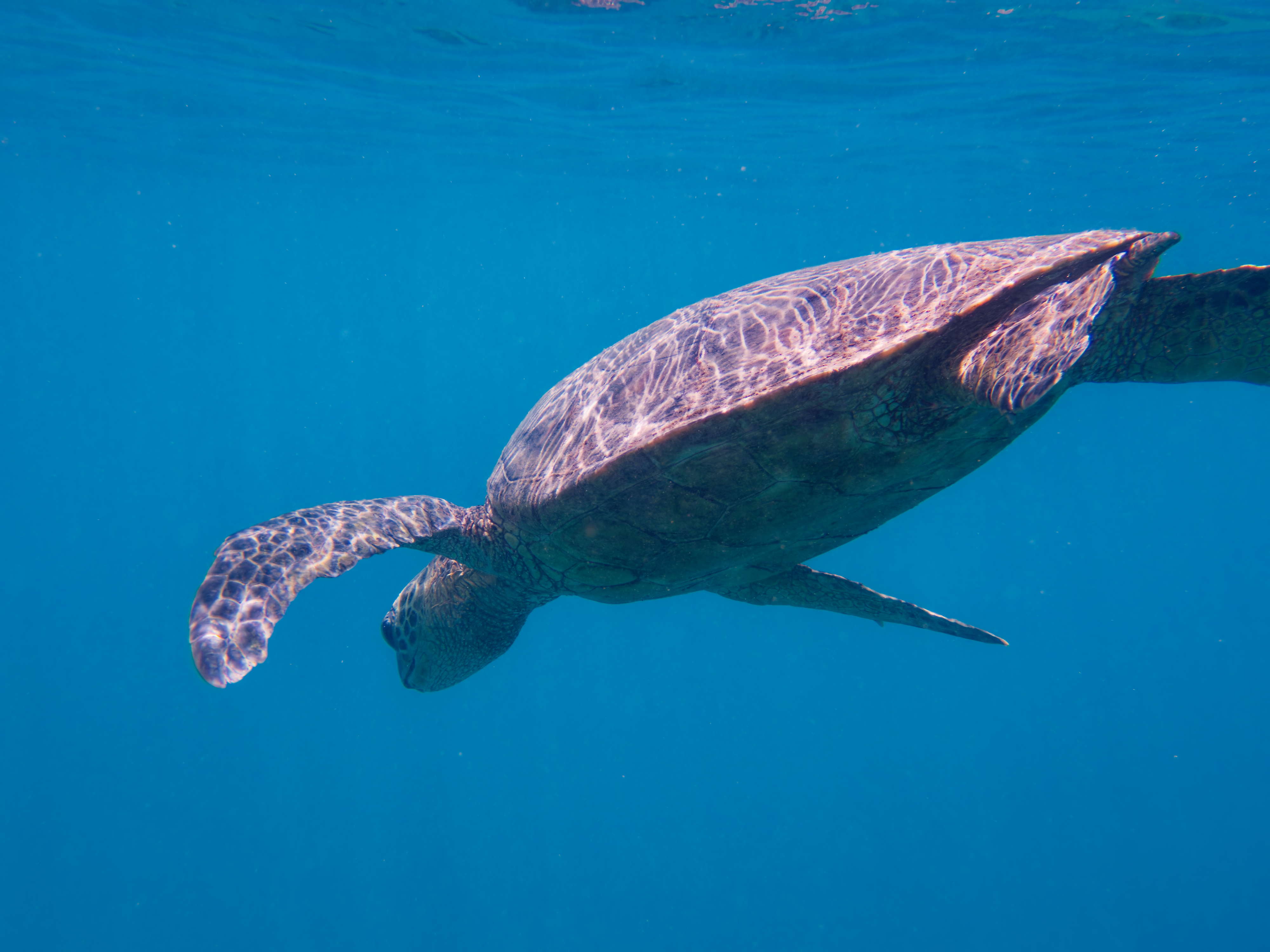 息子が小さい頃からシュノーケルしていたから、ハワイでの定番アクティビティだ。 この日はウミガメだけだったが、この辺りはイルカの群れの通り道になっているらしく、運が良ければイルカも見れる。