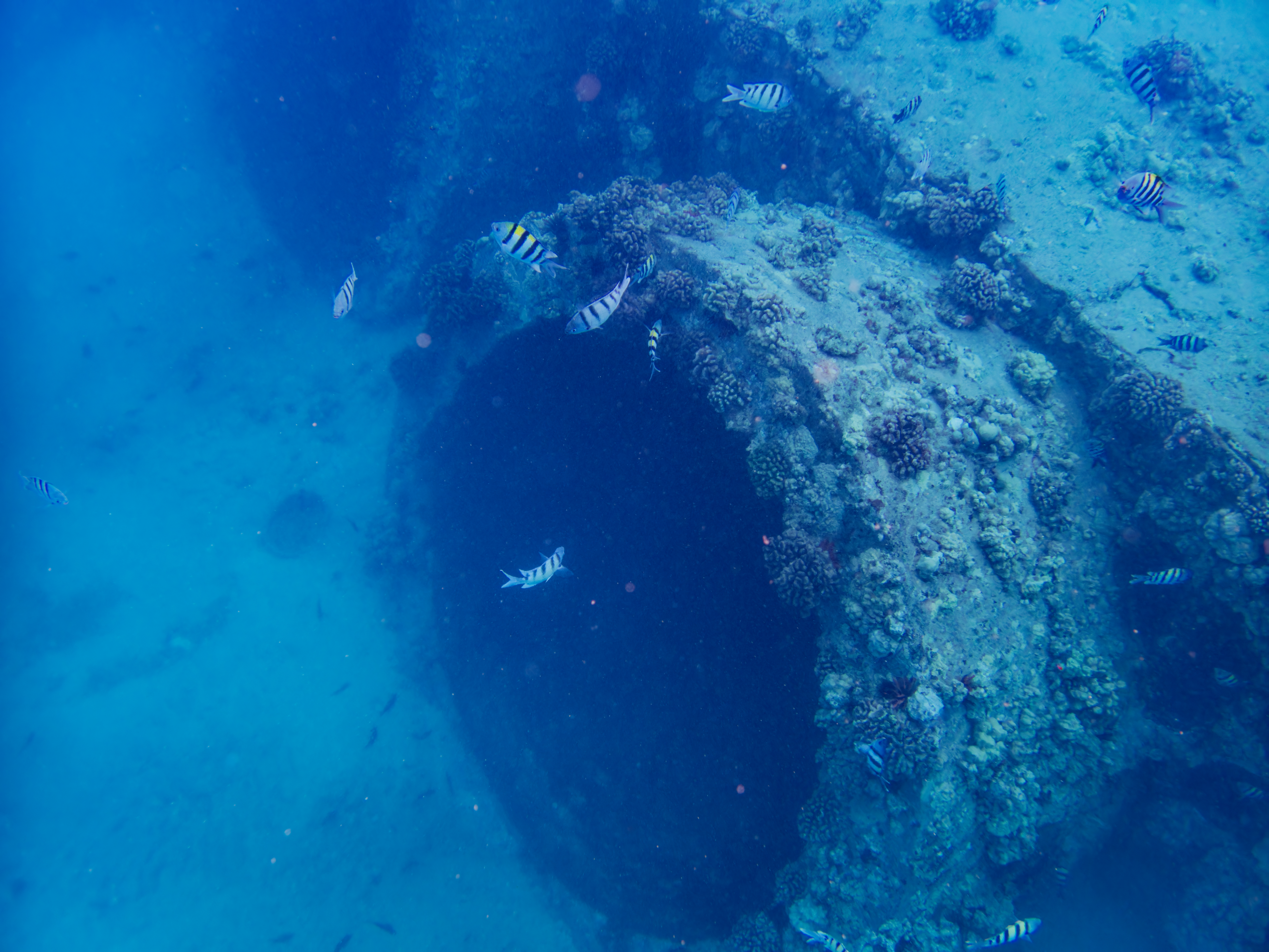 観光客が大勢くるような場所ではないが、火力発電所の暖かい排水が沖合200m程の海底から排出され魚が多く棲みつくため、ダイビング・シュノーケルスポットになっていて、息子とちょいとシュノーケルを楽しむ。